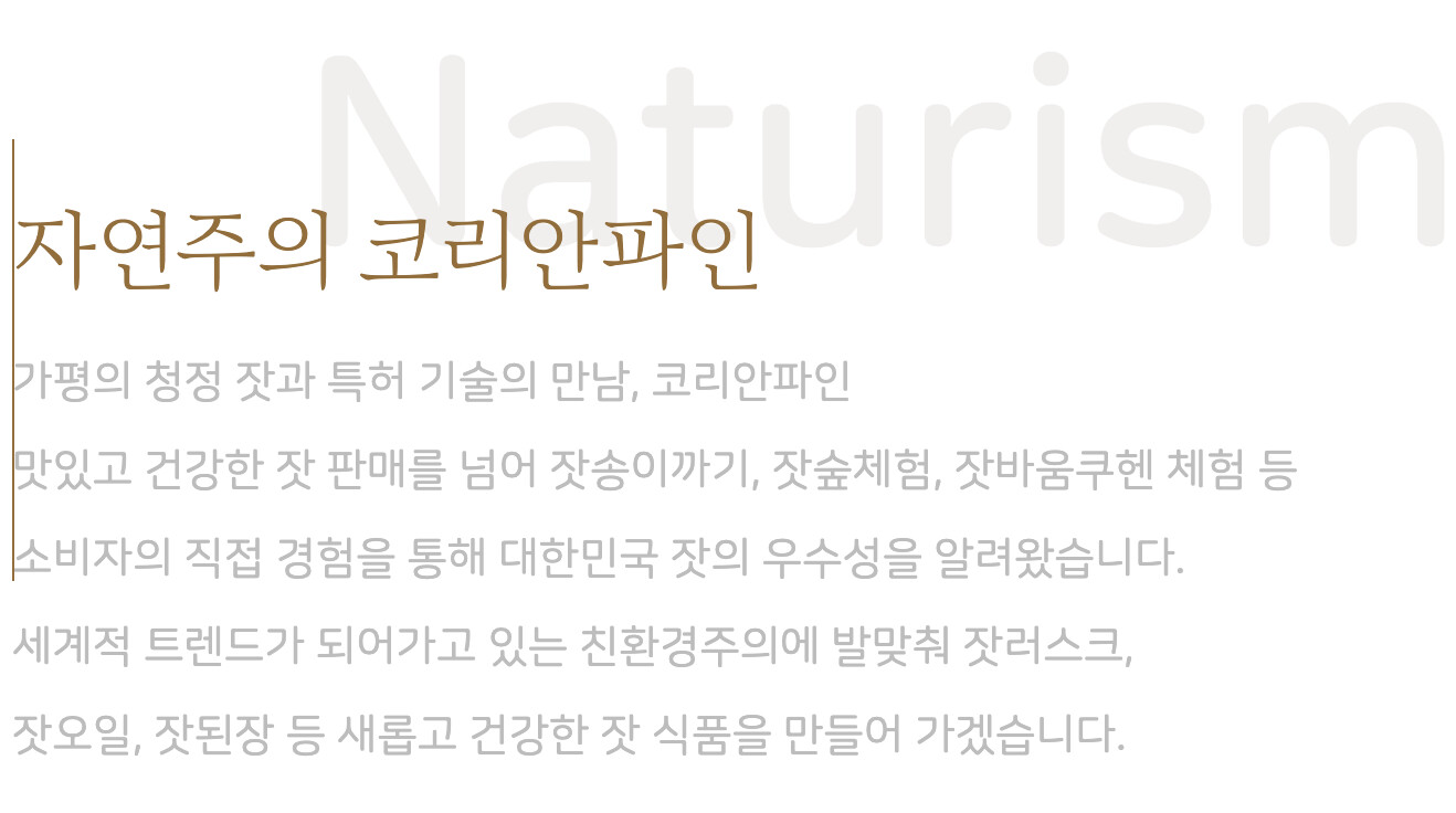 상호: 농업회사법인 (주)코리안파인 | 대표이사 : 최수연 | 경기도 성남시 분당구 정자일로 95, NAVER 1784, 13561사업자등록번호 220-81-62517 | 통신판매업신고번호 2006-경기성남-0692호 [사업자정보확인]전화 1588-3819 | 이메일 helpcustomer@naver.com | 통신판매신고 : 2016-경기가평-54