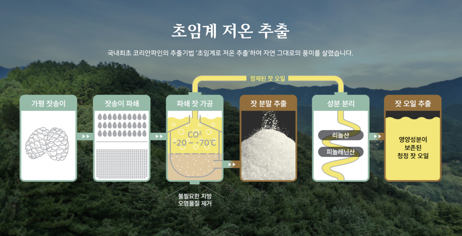 친환경 잣 잎 원액과 피톤치드 외피에서 원액을 추출하고,